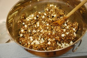 Add the choc chips, nuts, coconut, or whatever additional mix ins you like, and stir until everything seems well distributed.